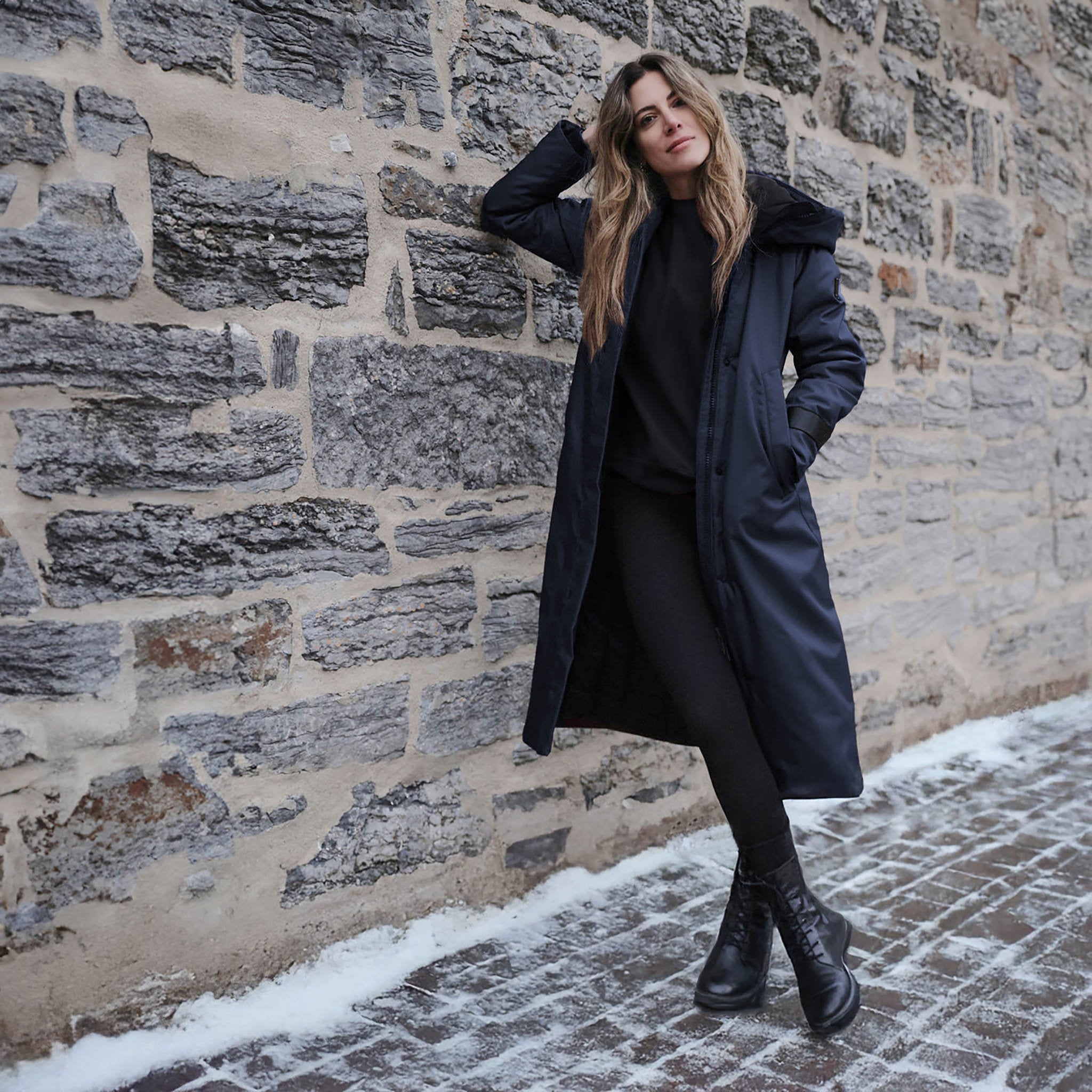 Made in Canada. Our longest women's style, this full-length winter coat combines effortless elegance with exceptional warmth. Its tapered fit at the waist and hips ensures a flattering silhouette without the bulk, even with its extended length.